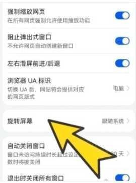 2、进入浏览设置界面后,找到并点击旋转屏幕。