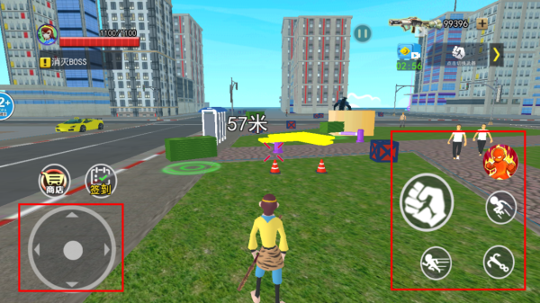 3、通过左侧操控盘控制角色移动,右侧使用技能。