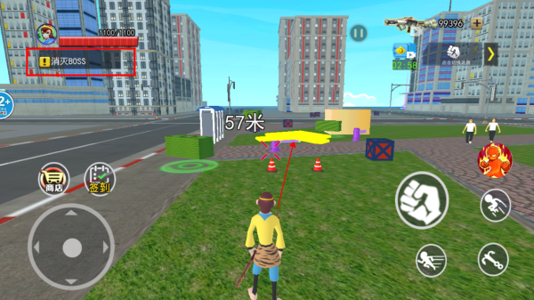 2、根据游戏给出的任务进行游戏,游戏中会有指示标,跟着指示标即可找到目标人物/boss;
