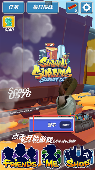 1、打开哈基蜂跑酷游戏,进入由B站UP主“xiaomulink”自制的魔改版地铁跑酷,点击屏幕开始游戏。