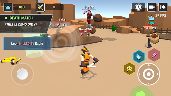 左下角的虚拟摇杆用于控制角色移动。右侧按钮分别对应跳跃、拾取物品和切换武器。操作简单直观,新手玩家也能快速上手。