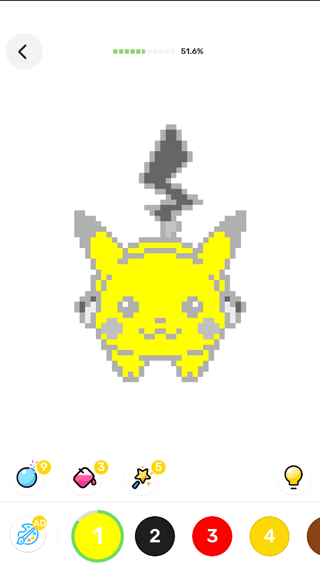 2、根据指示为皮卡丘上色,每次涂完一种颜色,系统会自动填充下一种颜色。