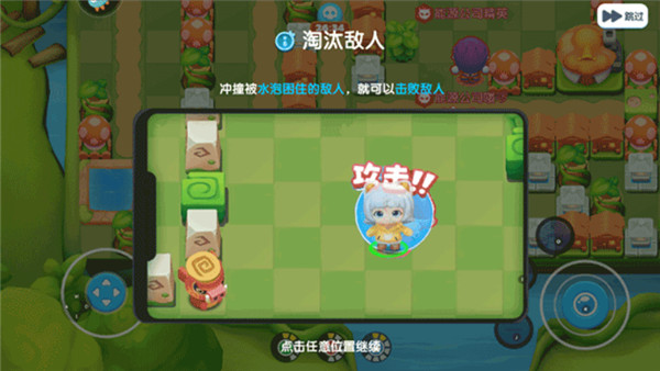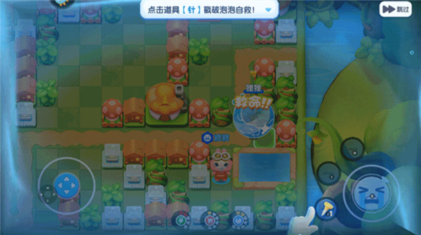 6、当自己被水球困住时,可以利用钉子道具或等待队友支援来脱险。