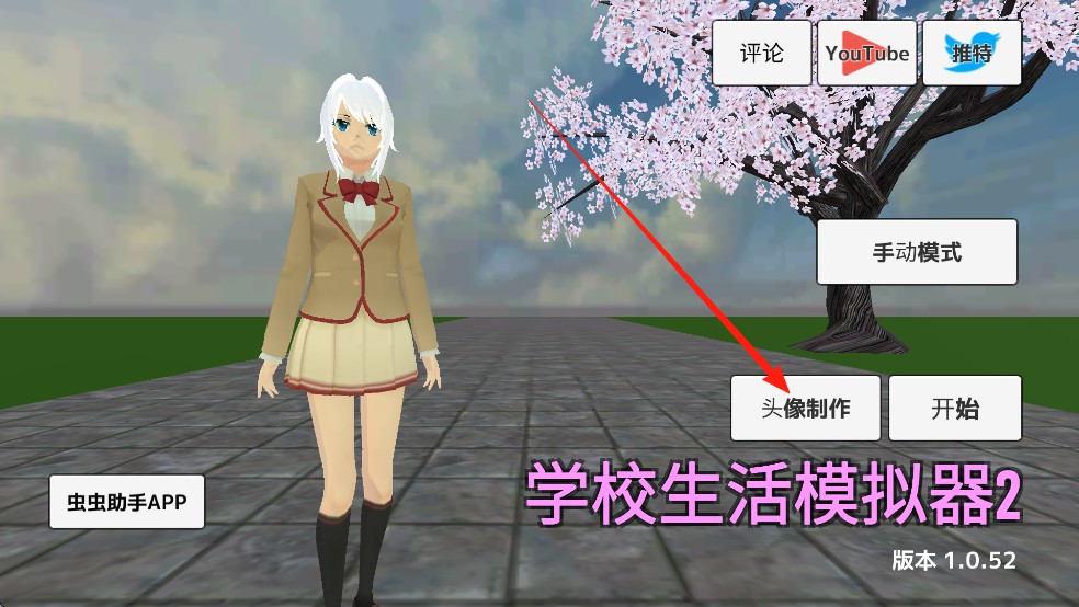 1、启动《校园生活模拟器2》中文版游戏,玩家可以自由定制角色形象,点击【头像编辑】