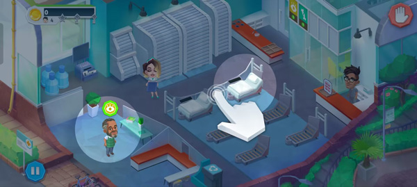 2、点击关卡开始接待患者,通过操作护士将患者安置在病床上;