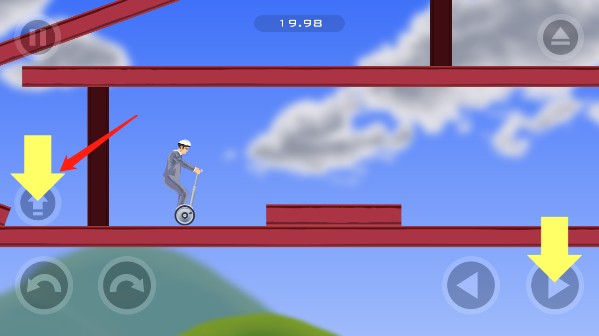 3、开始游戏后,右侧的按键用于向前移动。例如,如果前方墙壁上有控制桥的开关,玩家需要向前推动一下,以便通过,但要注意,推动后要后退几步,以免被开关喷出的气体推到后面的悬崖。