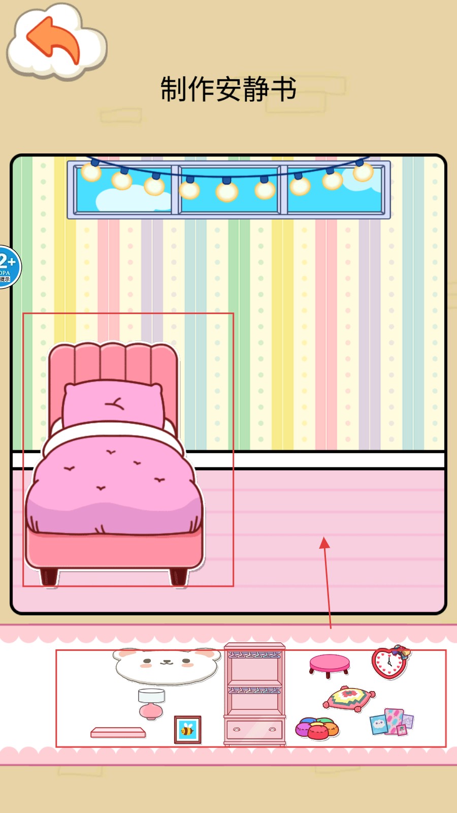 3、将你挑选的物品准确拖放到房间区域的合适位置。