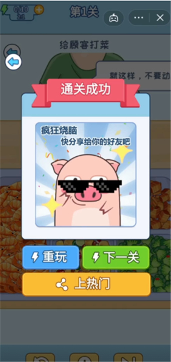 1、启动游戏,进入第一关,根据顾客的请求进行点餐。