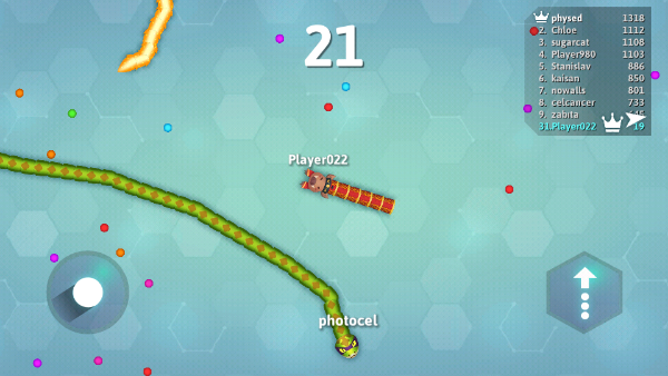 1、这款游戏主要考验玩家的反应速度,在蛇体还小的时候,可以选择低调发育,或者聪明地引导大蛇撞到自己的身体,让它们成为自己身体的一部分,这是快速成长的捷径。