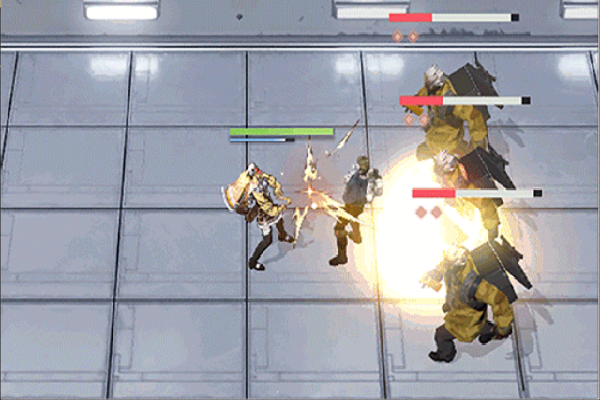 必杀技“重装齐射”:将臂炮架起,进入“重装”状态,并强化普攻。该技能不消耗能量,但使用后有一定的冷却时间;强化普攻效果:攻击间隔延长,改为对指定地格发射炮弹,命中后对周围十字地格内的所有敌人造成一定程度的真实伤害。