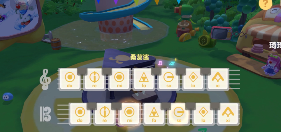 三角钢琴的演奏界面分为三排琴键,顶部是高音区,中间是和弦区,底部是低音区,从左到右对应唱名1234567。演奏时,需要同时按下多个琴键形成和弦,段落之间要留空格以符合节奏。玩家可以按照实际钢琴谱演奏,也可以自由创作旋律。钢琴的音色相当逼真,能满足基本的音乐演奏需求,但受游戏机制限制,无法演奏过于复杂的曲目。