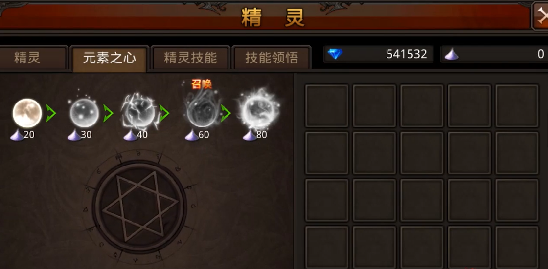 获取元素之心后,下一步是要提升它们的实力。这个提升的过程就是强化,等级越高,提供的属性加成就越大。至于获取方式,主要途径是消耗一种叫元素粉末的材料进行提炼。提炼界面有四个阶段提示(二十、四十、六十、八十),每次提炼消耗对应数量的粉末,成功则点亮该阶段图标,失败则可能熄灭已点亮的。连续成功点亮到八十阶段,下一次提炼就必得一颗珍贵的紫色元素之心了。元素召唤,花费100钻石能直接点亮前三个阶段(二十、四十、六十),这样只需再成功一次点亮八十阶段,紫色元素之心就到手了。