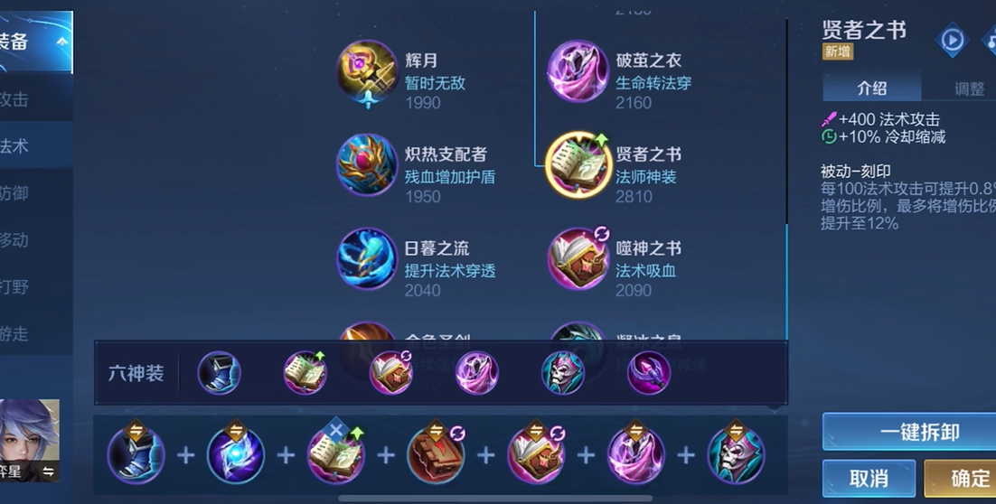 装备选择应以冷却缩减和法术穿透为主,冷静之靴、日暮之流与巫术法杖搭配,可以在后期补充辉月或贤者之书来提高生存能力或输出。铭文选择10梦魇、10心眼、10狩猎,以平衡法术穿透和移动速度。如果敌人恢复能力强,可以将回响之杖替换为梦魇之牙。弈星需要保持中距离输出,避免靠近敌人,依靠强化普攻来弥补技能真空期的伤害。逆风时利用大招清理兵线守塔,顺风时则压低敌人塔下并封锁野区,限制敌人发育。