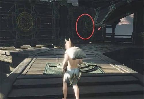 3、走水车右侧的小路绕回楼内,找到第二个发光地板机关。