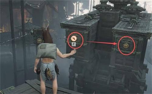 5、使用摄星拿月将中央柱子的机关绳索连接到两侧,放下吊桥,继续前进。