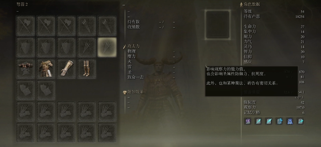 要想提高装备掉落率,关键是要增强角色的洞察力属性,并且配合恰当的战术行动。洞察力是决定物品掉落率的关键指标,主要靠增强角色的感知能力来提升。玩家可以通过消耗卢恩来提升角色等级,把点数分配到感知能力上,这样就能增加基础洞察力。银色粪金龟护符是最关键的装备,它可以直接提供明显的洞察力加成。玛莉卡的印记、腐烂印记等护符也能带来额外的洞察力提升。在消耗品方面,银色鸡爪在吃下后能临时提升洞察力,这种效果可以和护符加成叠加,为高效刷装备提供帮助。