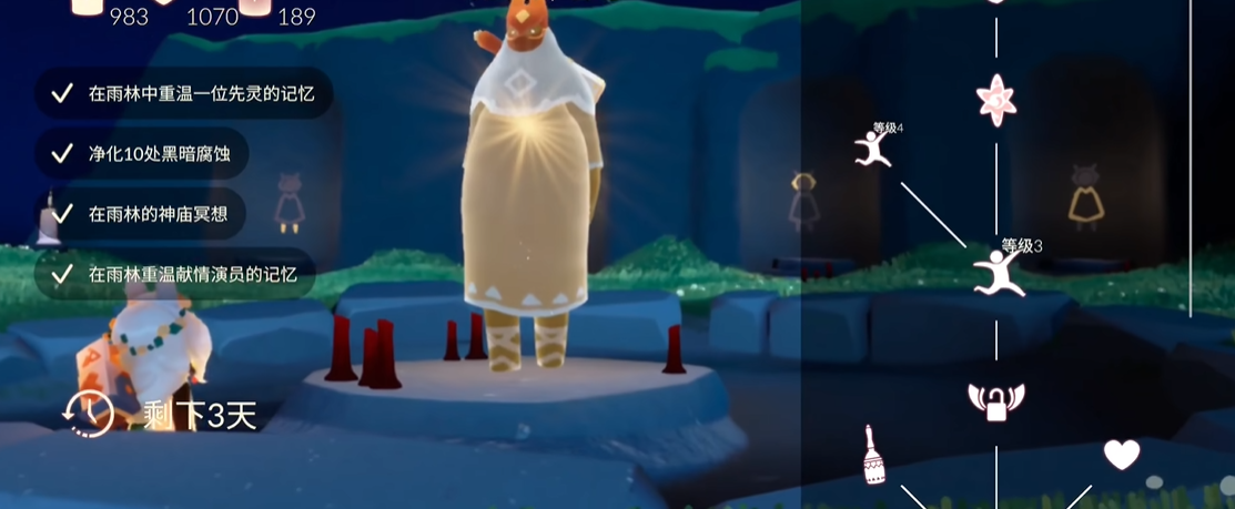想要学习跳芭蕾舞的舞蹈动作,玩家可以通过特定的方式来获得。这些动作通常归类为舞蹈表情,并分为不同的等级。为了解锁和提升这些动作,玩家需要收集游戏内的资源,比如爱心和蜡烛。而获得这些动作最关键的途径就是通过交换季节先祖或是完成季节任务。 玩家需要在特定的地图位置找到这些先祖,比如在霞谷的右侧墙壁的山洞或者是云野的隐蔽区域。点亮的先祖会要求玩家收集他们的记忆碎片,然后在动作树中用这些碎片来交换动作。一般来说,初级动作比较容易获得,而高级动作则需要更多的爱心或蜡烛。