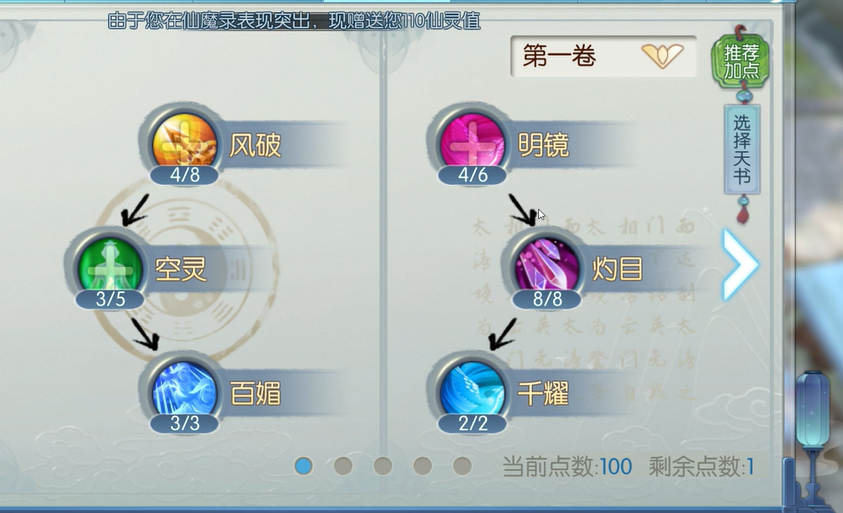 在装备和属性培养上,应该优先提升暴击、爆伤和命中率,武器灌注选择无视防御属性。首饰推荐使用烛龙套,宝石搭配2爆伤1暴击的组合。金身和法身以增强输出为主,适当提升气血和防御。平时要多练习走位和技能衔接,虽然仙烈山比较脆弱,但只要掌握好节奏,完全可以在敌人近身前结束战斗。加点没有固定的标准,可以根据自己的操作习惯进行微调。比如,如果喜欢打控制,可以多加点缚神诀;如果偏爱续航,可以将天书的吸血效果拉满。