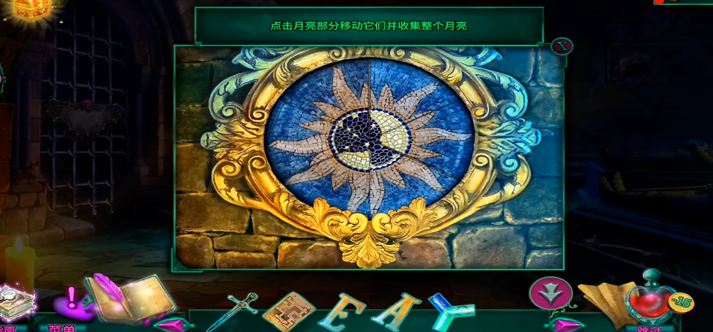 游戏一开始,从左下角的下水道入手,那里藏有一份笔记和金属蝙蝠的第一块零件。用骨头钩子钩取时,留意到字母提示ADREM,以后会用得上。中间的石像也不要忽略,那里可以拿到骨头和字母AE。月亮拼图在左侧的壁龛里,将收集到的月亮部件放进去拼好,不仅能得到剪刀,还能解锁第三块零件。右边的棺材要用剪刀剪两次,能得到织物和旋钮。