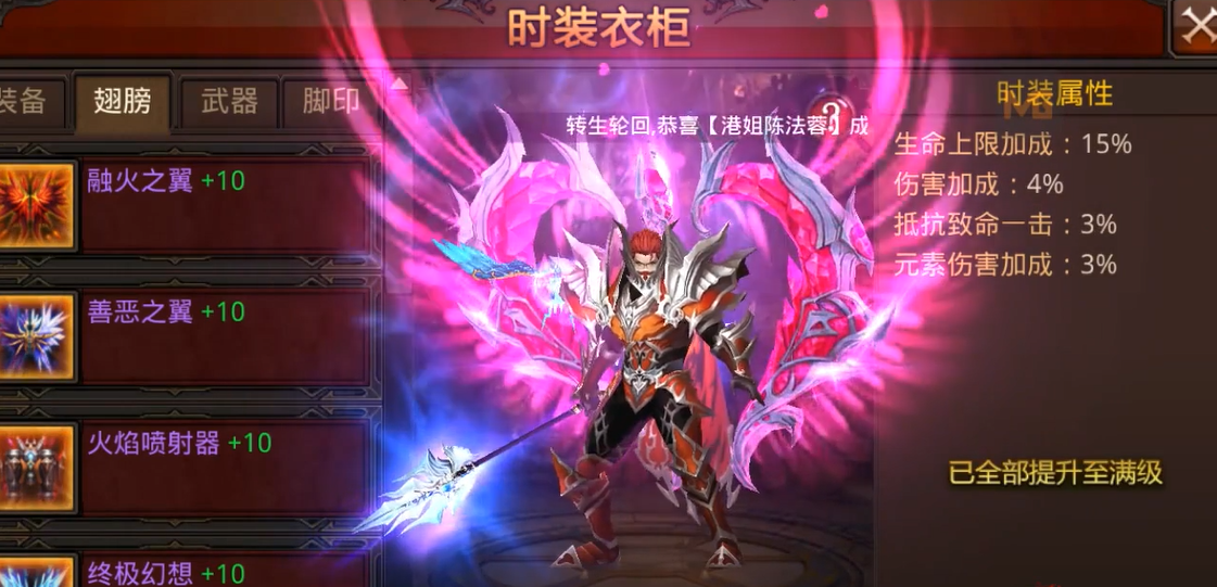 翅膀的属性强化要根据职业需求来,比如输出职业就要优先提升攻击属性,而防御型职业则要注重生命值和防御加成。升级后的翅膀会解锁新的形态和技能,但要注意强化等级要达标,避免进阶受限。附魔和翎羽系统可以进一步优化属性,比如高级幸运天赐翎羽可以提升暴击率,套装效果也能激活额外增益。