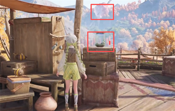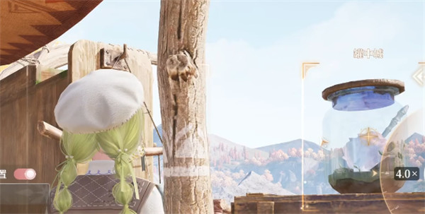 第四步,对话完成后,你会在旁边看到一个木箱,里面有个罐子。通过罐子拍摄远处的蜗牛城。