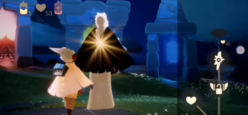 穿上那件经典的黑色或白色斗篷,本质上是在寻找自己的祖先,用积攒的蜡烛和爱心来交换。黑色和白色斗篷的获取方法略有不同,黑色斗篷是永久装扮,随时可以去兑换,而白色斗篷则是季节性限定,需要等待其复刻返场。因此,提前准备好蜡烛和爱心是必不可少的,以免错过心仪的装扮。首先,需要找到祖先解锁节点,否则连兑换的选项都看不到。