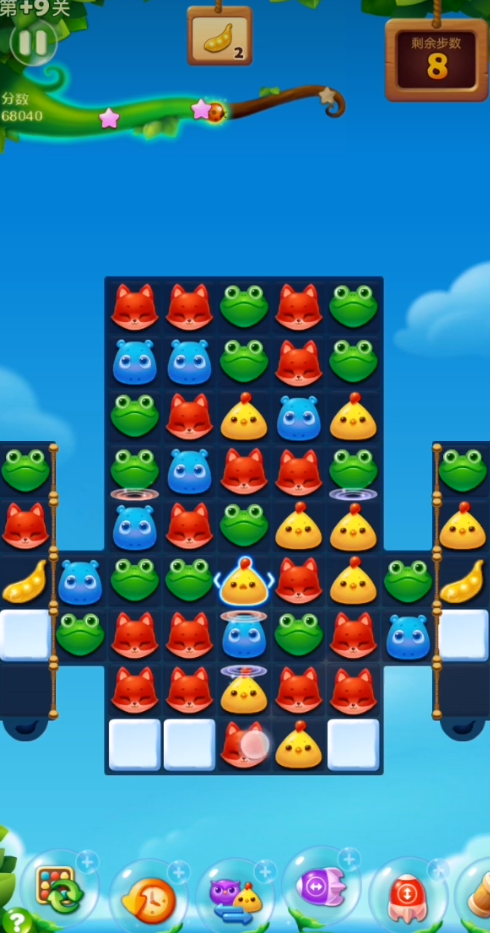 开心消消乐精英关第9关的核心挑战在于利用有限的步数让两个金豆荚成功掉落,这一关的障碍物主要集中在两侧,需要通过特效才能有效清除。开局时不要急于随意移动动物,而是要先观察整个棋盘布局,找准突破口。这一关的雪块障碍相对容易处理,因为它们不是双层...
