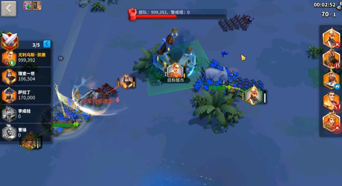 攻击过程中的行军时间也是重要的隐性消耗,部队行进速度受将领天赋、科技研究和文明特性多重影响。远距离作战会大幅延长部队往返时间,这不仅增加了被敌方援军拦截的风险还会影响参与其他紧急任务的机会成本。使用加速道具可以缩短行军时间但需要权衡这些珍稀道具的投入是否值得。选择进攻路线时应当尽量利用地形缩短实际行军距离,同时避免让部队长时间暴露在无人区成为敌人容易攻击的目标。调动部队时还需要注意联盟领土的覆盖范围,在友方领土内行军可以获得额外速度加成。合理规划多支部队的行进路线能够形成协同效应让敌人难以同时应对多线进攻。