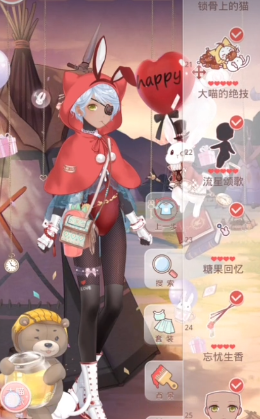 在关键服饰的选择上,连衣裙一定要选用设计图打造的兔女郎套装,这是通过关卡的基本要求。发型建议用售价65钻石的洋娃娃·金,鞋子也是要选兔女郎高跟鞋,同样需要通过设计图来制作。外套可以选择剪裁T恤或者风度棕,袜套推荐搭配森系袜套和南瓜派对组合。至于妆容,信鸽少女会是最好的选择,性价比相当高,只要28钻石。饰品方面,兔女郎头饰和特工颈饰可以有效地提升性感属性得分。