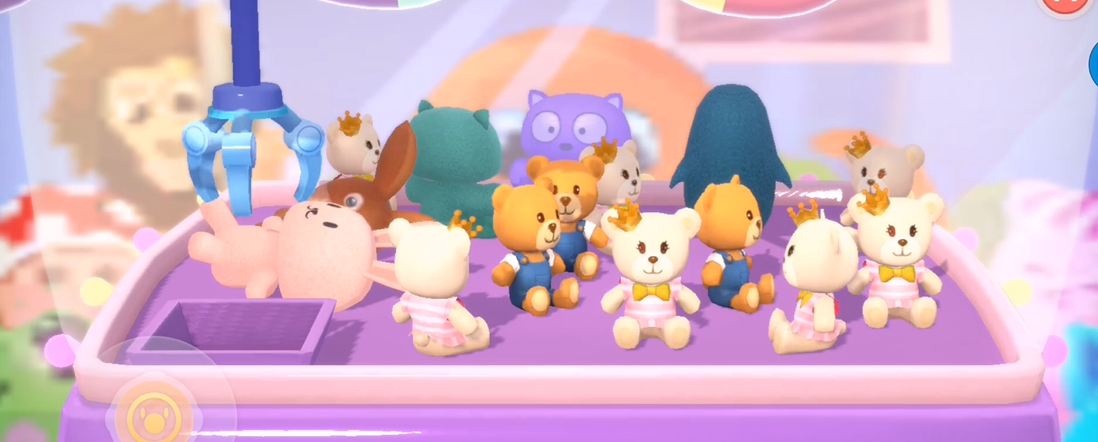 观察娃娃机内的整体布局也很重要,有时候需要先清理掉挡在前面的其他娃娃才能顺利夹到目标娃娃。比如想要夹取粉色半透明圆球娃娃时,最好先把旁边的蓝色小熊和橙色小熊夹走,再把挡道的红色细菌娃娃清除,这样就能为夹取目标娃娃创造更好的条件。在实际操作过程中要注意夹子与娃娃的相对位置关系,夹子下落时最好不要和娃娃处在完全垂直的直线上,可以稍微靠近洞口方向一些,这样夹子回收时会产生往洞口方向的拉力。如果遇到斜坡角度较大的娃娃机,可以利用这个特点让娃娃自然滚落进洞口,这种技巧特别适合抓取那些小而轻的娃娃。当夹子抓住娃娃后,如果发现娃娃卡在钩子上,不要着急,这种情况下通常也算成功抓取。