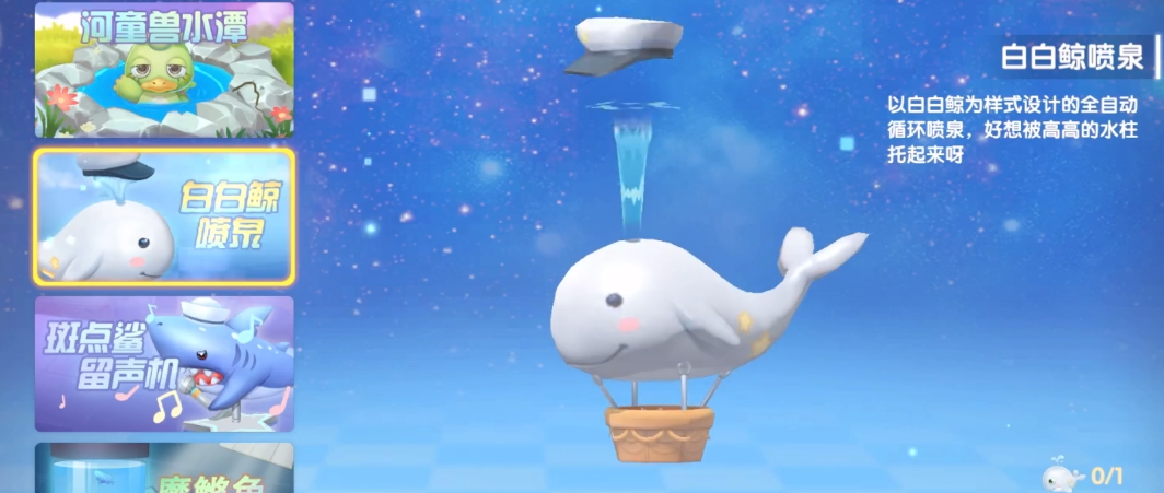 关于日常的维护,飘在空中的白鲸喷泉不能直接搬动,得先收掉支撑让它落到地上,然后再调整位置。最好在确定好家布局之后再飘起来,别做无用功。白鲸喷泉还能喷水,可以和别的家具一起弄个空中花园或者水景,但要注意,家园的装饰上限可能会限制你的创意。