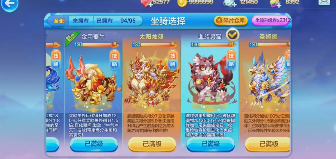 白泽作为新手友好型坐骑,操作简单,非常适合在奖励关卡中触发技能。穷奇则需要玩家在坐骑技能发动后迅速启动角色冲刺,才能发挥最大效果。而血族灵猫,作为同一系列的坐骑,不仅能激活家族得分加成,搭配特定宠物还能实现惊人的得分比率。