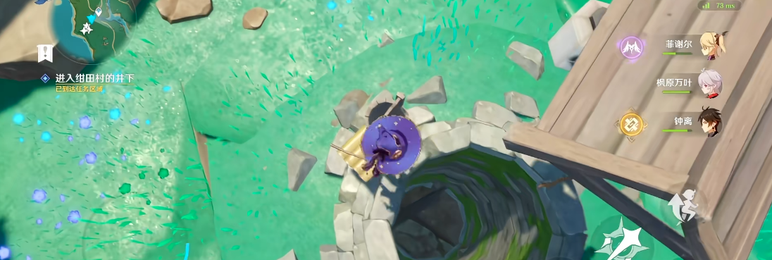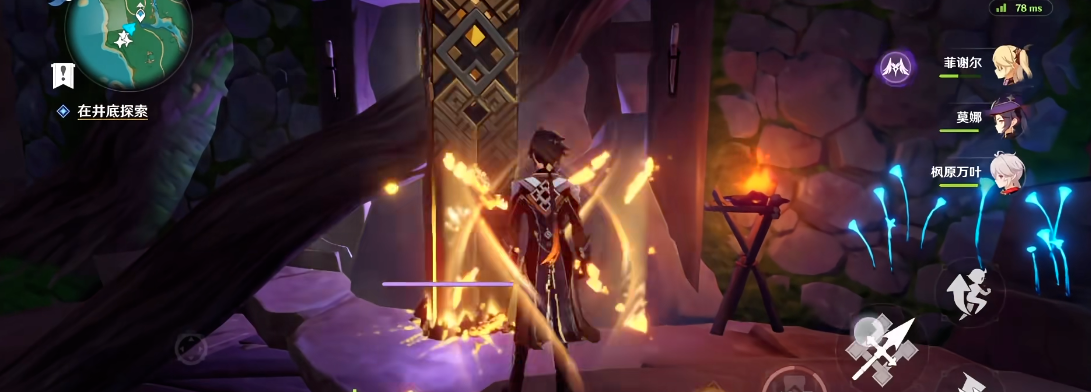 要进入井底,首先要找到绀田村村长家后边的那口枯井,井口一般被石头堵住,得先清理掉这些障碍。在正式下井探索之前,最好带上能使用火元素的伙伴或者持有大剑的角色,因为井里会有紫色的雷元素碎石阻碍去路,用火攻或者大剑砍可以轻松解决这些障碍,继续前进。进入井底后,沿着通道走,你会看到第一个铁门,门左边有一个机关,靠近后按交互键就能打开第一扇门。