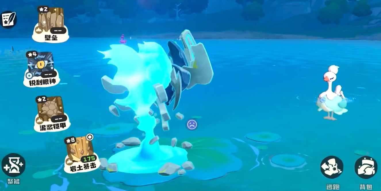巨灵石有三个技能可以使用。第一个技能是扔泥巴,这是一个单体攻击技能,伤害倍率高达120%,攻击力相当可观。第二个技能是超声波,这个技能比较特别,属于范围攻击,可以同时攻击多个敌人,尽管单个目标的伤害只有70%,但因为它能群攻,并且具有穿透效果,所以在对付那些防御力强的敌人时非常有效。第三个技能是烟雾弥散,这是巨灵石的大招,释放时它会进入霸体状态,不会被攻击打断,被这招命中的敌人会暂时失明,在这段时间内无法使用任何技能,相当于暂时失去了战斗能力。