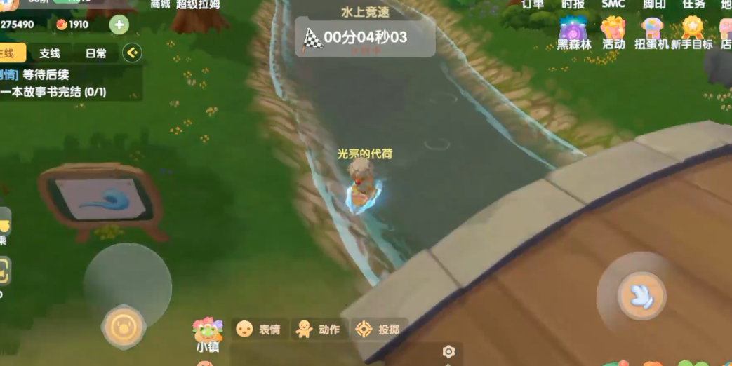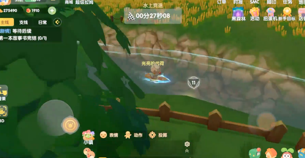 水上竞速就在开心农场和阳光牧场交界处的那条河里,河里漂着一些红色的障碍物,上面标着数字。顺着河流找到那个标着数字1的浮标,站上去或者触碰它,比赛就正式开始了。整个赛道就是从1号浮标开始,一路按顺序游,一直到最后那个12号浮标就算到终点了。这...