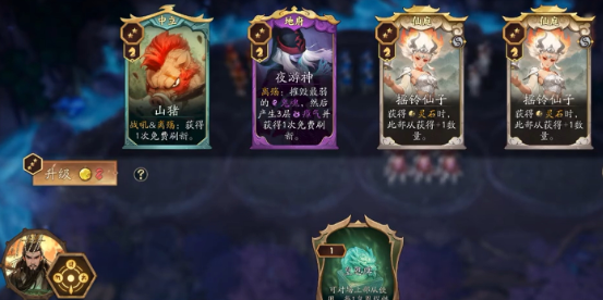 除了基本的交易,灵石还可以用来提升天书的等级。天书的等级越高,我们能使用的角色就越多,刷新的角色池质量也会更高。值得注意的是,提升天书等级所需的灵石会随着等级的提升而增加。而且,同一等级的提升费用会随着游戏轮次的增加而降低——比如在第10轮提升到3级需要5个灵石,但在第15轮可能只需要3个灵石。这个机制促使我们采取一种运营策略:暂时不升级,等待费用降低后再进行,这样可以最大化地利用资源。