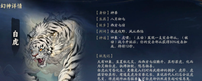 以上就是关于代号妖鬼白虎幻神的介绍。想要了解更多游戏攻略,请关注剑意游戏网的最新更新!