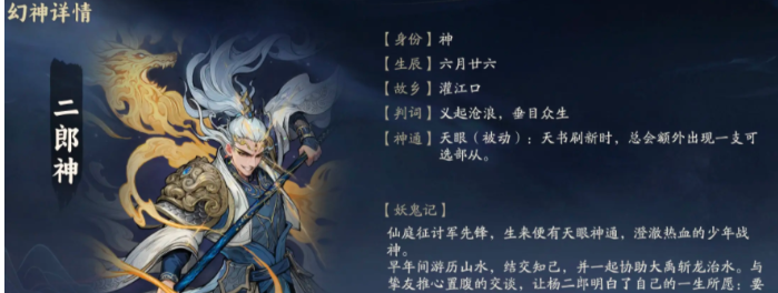 除了上述的神兽幻神,还有其他神话角色幻神。许多玩家倾向于使用二郎神,这个角色虽然不直接增强战斗能力,但能增加从天书中获取理想阵容的概率,有助于快速完成阵容搭配。这也是一个非常适合新手的角色,对于那些在游戏早期找不到头绪的玩家来说,使用这个阵容能实现全面压制。