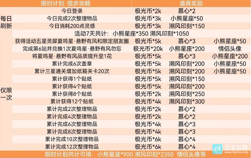 限时计划总共可以获得:小熊星座x900