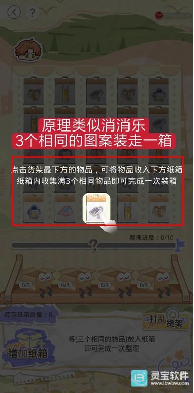 2.如果整理过程中纸箱数量不够,可以挑战【增加纸箱】环节,通关后可以获得整理所需的【纸箱】。