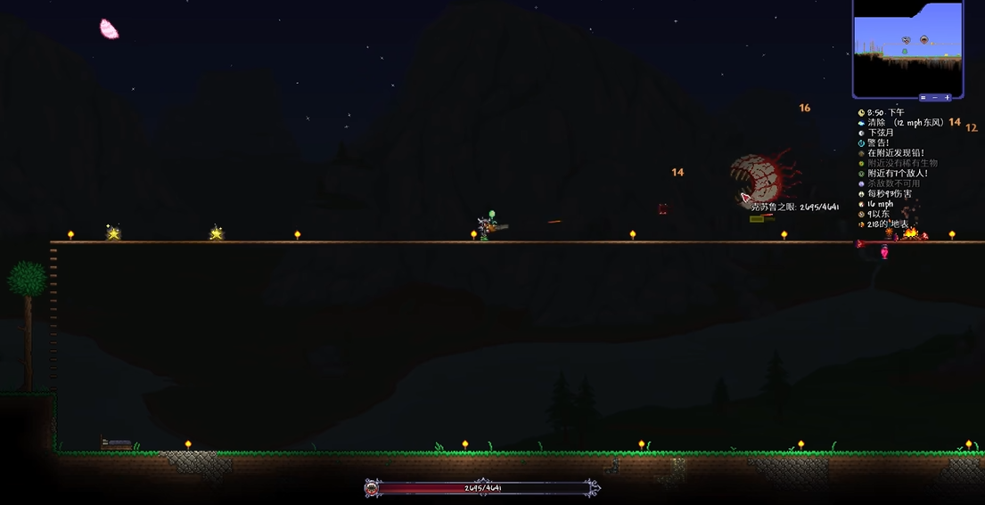 召唤克苏鲁之眼后,它会进入战斗状态,这个BOSS分为两个阶段,第一阶段会进行直线冲击并召唤克苏鲁奴隶,第二阶段进入狂暴状态,移动速度更快但不再召唤小怪。建议在平坦开阔的场地搭建一个高度15-20格、长度超过100格的木质平台,方便躲避攻击。装备方面,推荐使用长矛类武器或弓箭进行远程攻击,搭配银级以上的防具可以有效减少伤害。击败克苏鲁之眼后,将获得6-10个猩红矿或魔矿,这些是制作猩红套装或暗影套装的基础,有助于新手更快进入游戏的中期阶段。除了召唤BOSS的神秘眼球,游戏中还有一个相关物品叫神秘咧嘴眼球,这是一种宠物召唤物。它只能在大师模式下击败克苏鲁之眼后有25%的概率掉落,通常呈现蓝色虹膜和瞳孔,快速移动时瞳孔会向上滑动,露出一张嘴,为游戏增添趣味。