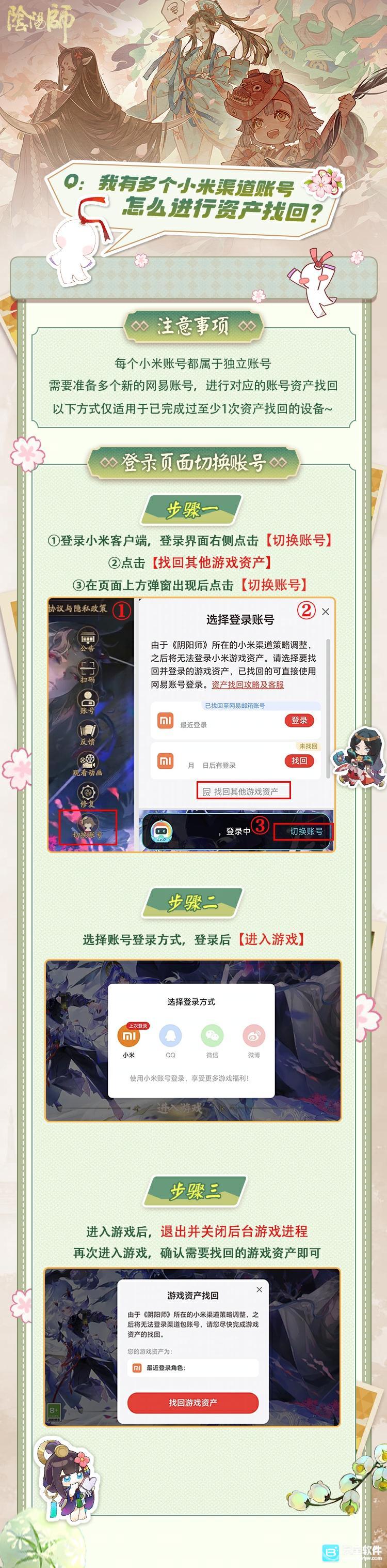 在开始资产找回之前,请先下载《阴阳师》小米渠道客户端,或者进入网易云游戏的《阴阳师(小米服)》准备找回。