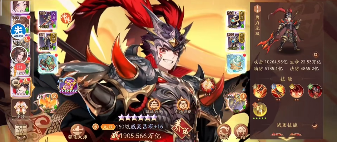 通常,一号位会安排吕布,他天生的高暴击率和全体攻击能力,放在最前方能迅速出手,对敌人造成冲击。随后,二号位或三号位可以安排吕玲绮,她的技能既能对前排敌人造成伤害,又能为自己提供护盾,生存和输出能力都很出色。于吉、左慈这类控制型武将通常放在中间,确保他们能稳定释放控制技能。后排则留给貂蝉这类补充伤害或华佗这类治疗型武将,也可以安排主角提供辅助效果。这种前后排布局的思路是,前排承受伤害并执行主要输出,中后排负责控制和持续作战,形成完整的攻防体系。当然,站位不是一成不变的,如果觉得吕布容易被击败,也可以考虑将其后移,或者根据对手的阵容灵活调整武将位置。
