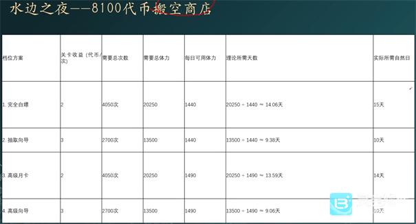 一、水边之夜兑换建议