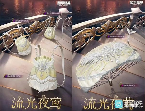 - 防护装备:流光夜莺头盔(1/2/3级)、背包(1/2/3级),都采用了主题色调。
