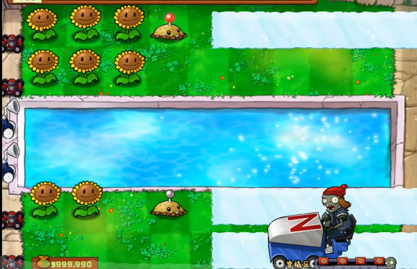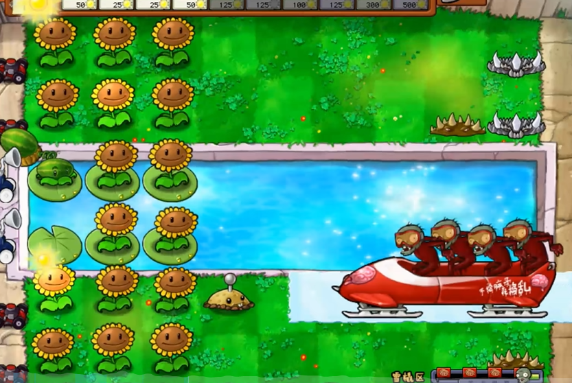 在冰车和雪橇关卡中,要想顺利通关,关键在于一边快速积累阳光,一边巧妙应对冰道和那些坚固的车子。一开始不要急于种植攻击性植物,而是先在池塘、水道和陆地后两排种满向日葵,稳固阳光收入,这是后续持久战的基础。等到阳光充足一些后,就要迅速在僵尸可能经过的道路上布置地刺或更高等级的地刺王,这两种植物能有效阻挡冰车,摆放在前排能有效地拦截它们。像火爆辣椒和窝瓜这类一次性强力武器暂时不要使用,要留作备用,尤其是火爆辣椒,它的主要作用是在冰车铺出长冰道后,一次性清理掉一整排僵尸。