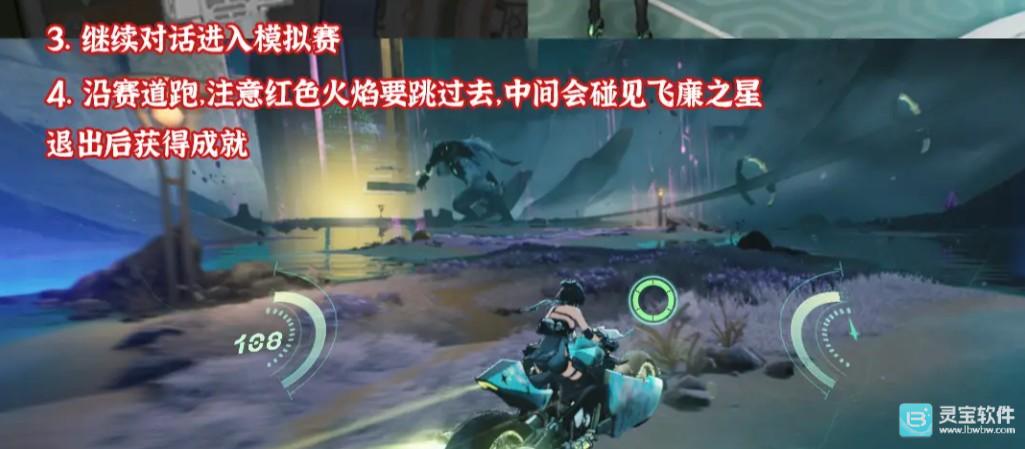 沿着赛道跑,注意要跳过红色火焰,中间会碰到飞廉之星,退出后获得成就。
