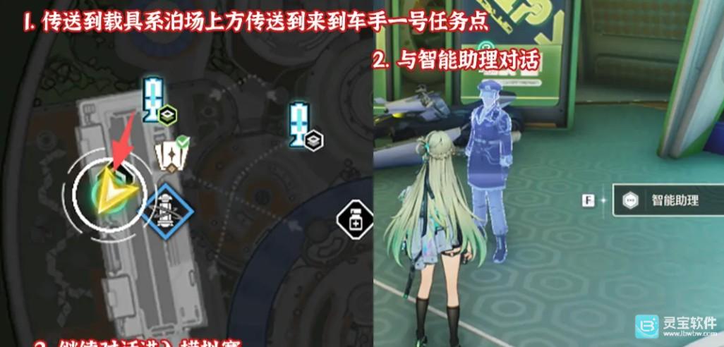 传送到载具系泊场上方,来到车手一号任务点。