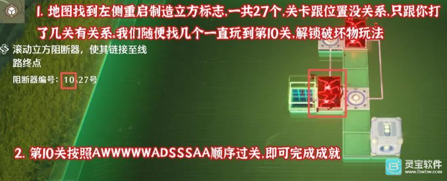 在地图上找到左侧的重启制造立方标志,总共有27个,找到几个就继续玩到第10关,解锁破坏物玩法。