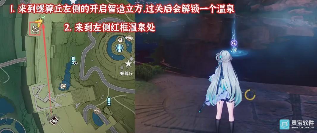 来到螺算丘左侧的开启智造立方,过关后会解锁一个温泉。